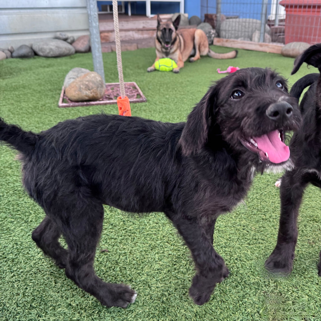 Fast forward a few weeks, and what a transformation! These sweet sisters are now cleaned up, eating well, gaining weight, and absolutely LOVING life. At Mission Bay Puppy Rescue, they’ve been having the best time romping, wrestling, and running with the other pups.
