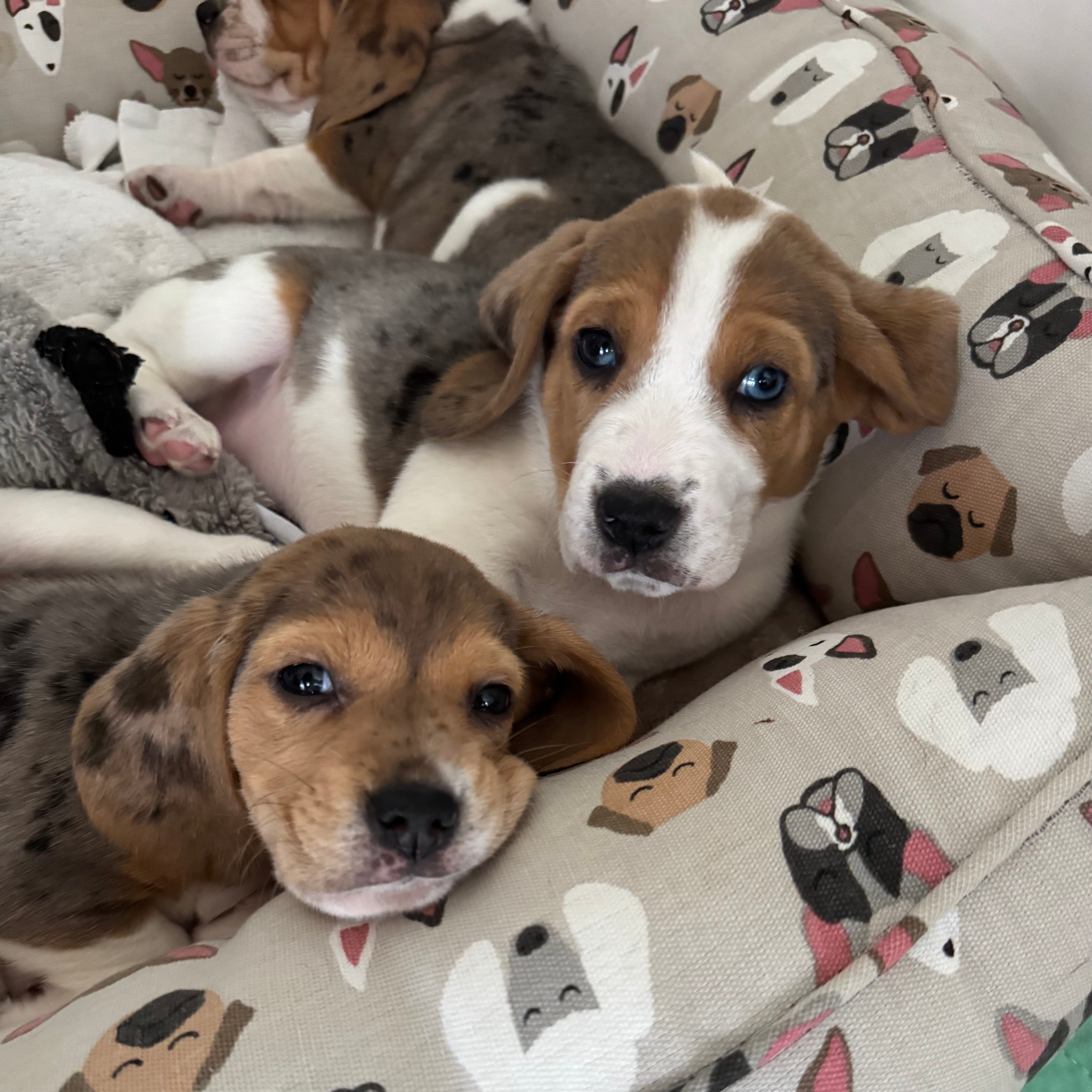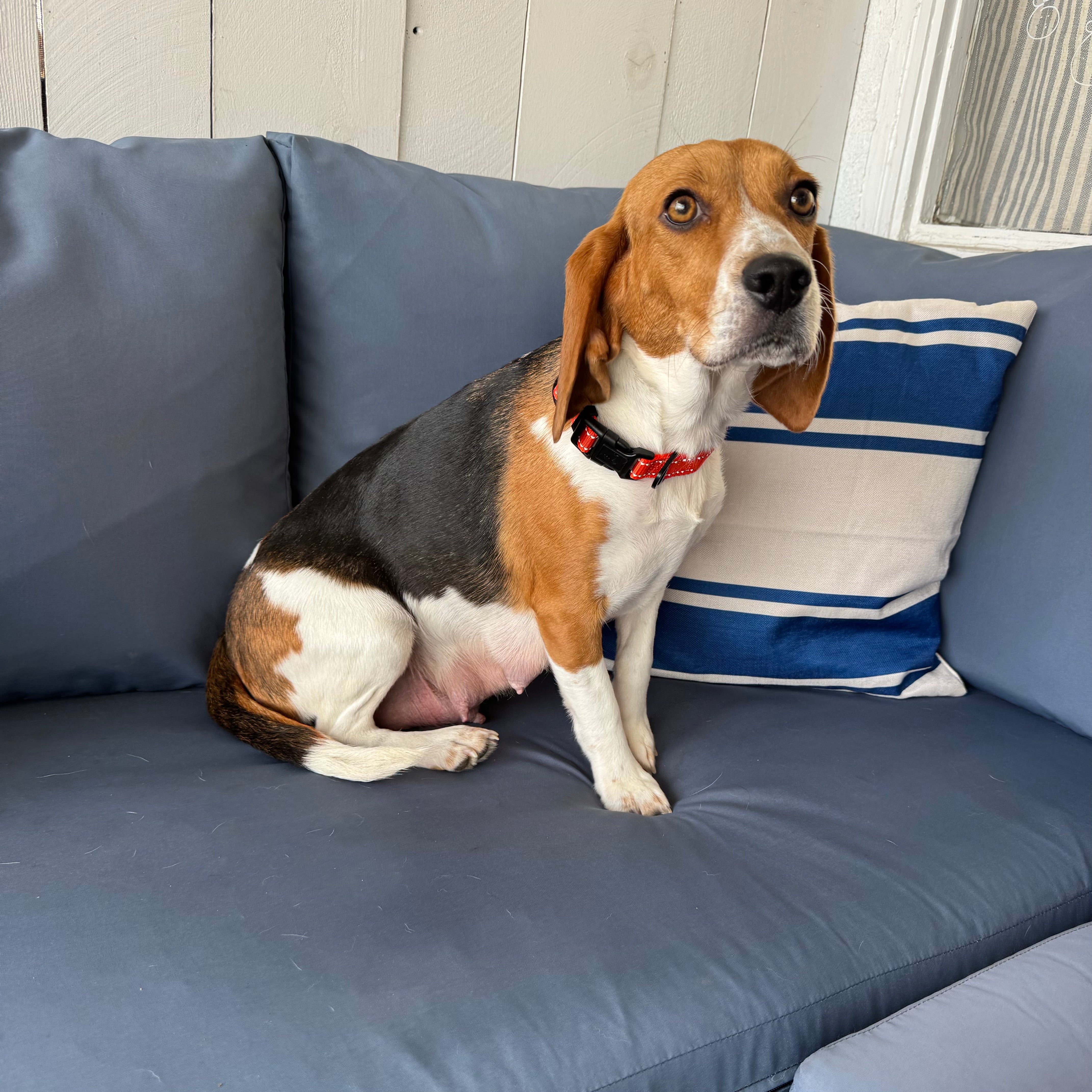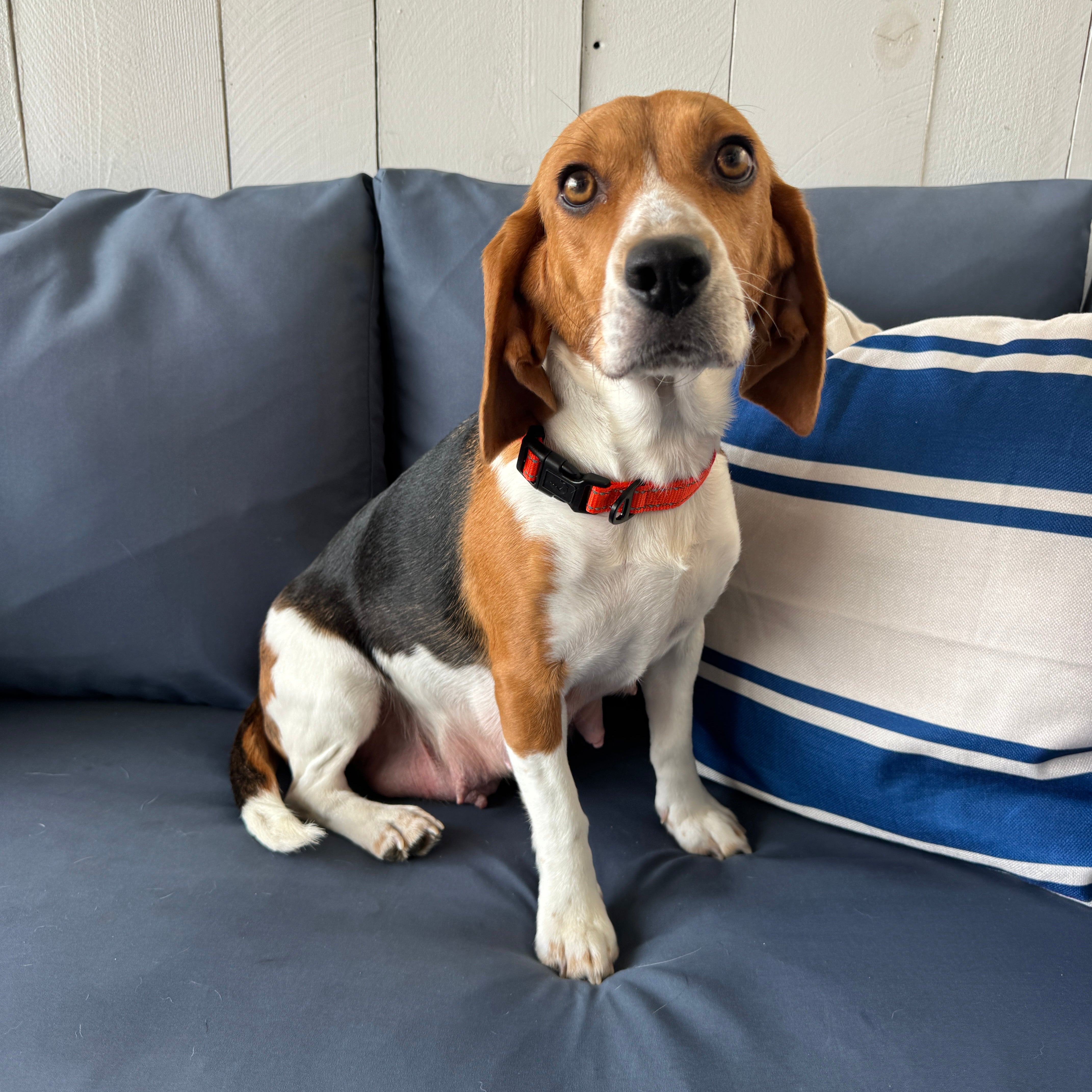 Mama Cookie – Bio Mama Cookie was found as a pregnant stray and brought to us by the County Animal Shelter. Despite her uncertain start, she has been an absolute gem—gentle, loving, and such a devoted mama. Watching her care for her babies has been incredibly special. Cookie has the sweetest soul and those classic beagle eyes that melt you on the spot. And a nose that seeks exploration. She is calm, affectionate, and happiest when she’s near her people. She’s the kind of dog who makes you fall in love quietly—one soft look, one gentle tail wag, one snuggle at a time. Mama Cookie is available for adoption, and we are also seeking a foster home for her while she waits for her forever family. If you’re looking for a loving, easygoing companion who will be endlessly grateful for a soft place to land, Cookie may be your girl.