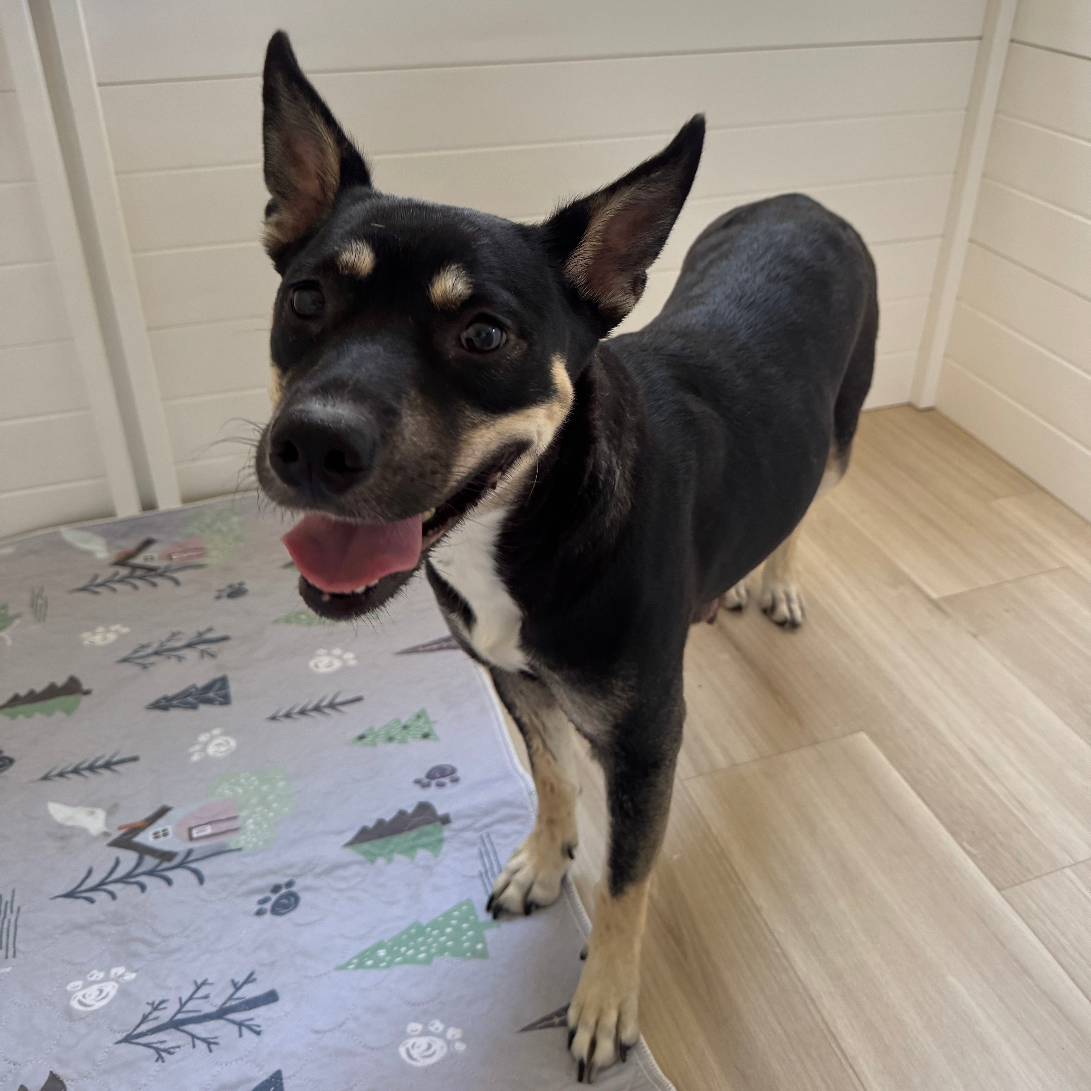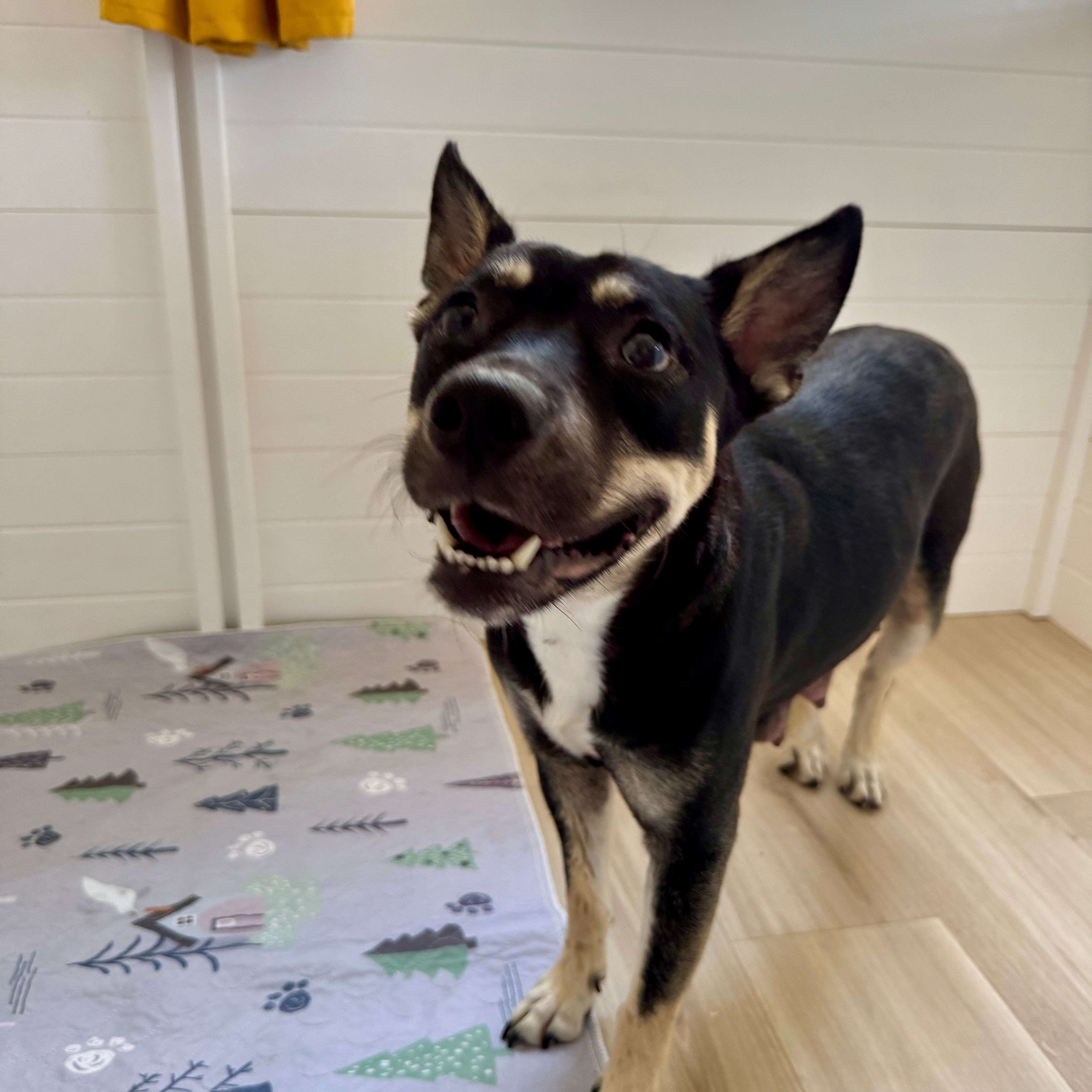 Meet Coraline Proud mama. Gentle soul. Possible Kelpie beauty. This gorgeous girl was found as a stray and brought to the San Diego Humane Society, where she safely gave birth to her four puppies on June 20, 2025 — two girls and two boys. Coraline is now in the loving care of Mission Bay Puppy Rescue and will be available for adoption once her pups are weaned (in about 4 weeks). We believe Coraline may be a Kelpie mix, a working breed known for their intelligence, agility, and loyalty. Kelpies are natural herders and tend to form deep bonds with their people. They thrive with structure, activity, and love to have a job — even if that job is just being your shadow on hikes, errands, or couch time. Coraline is friendly, calm, and clearly a wonderful mama. She’ll be looking for a home where she can stretch her legs, be part of the family, and continue receiving the love she’s earned a hundred times over.