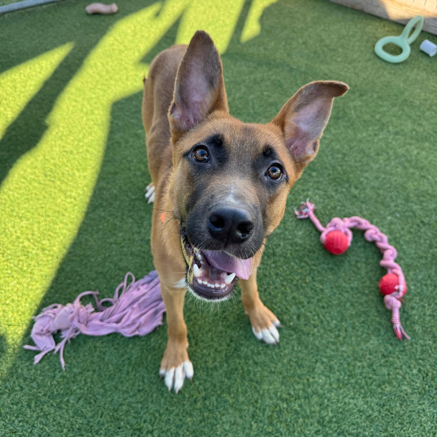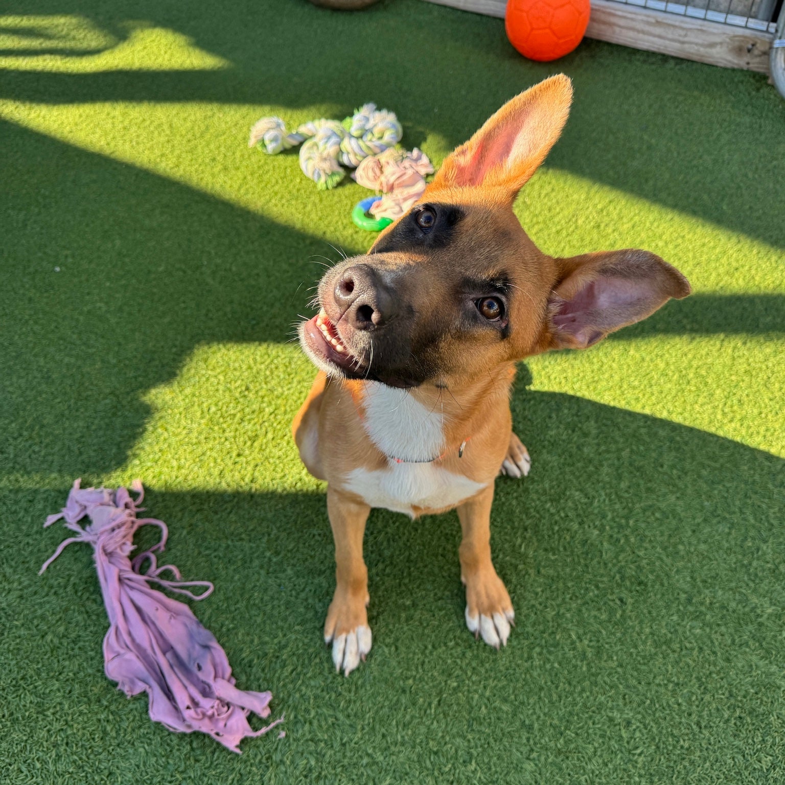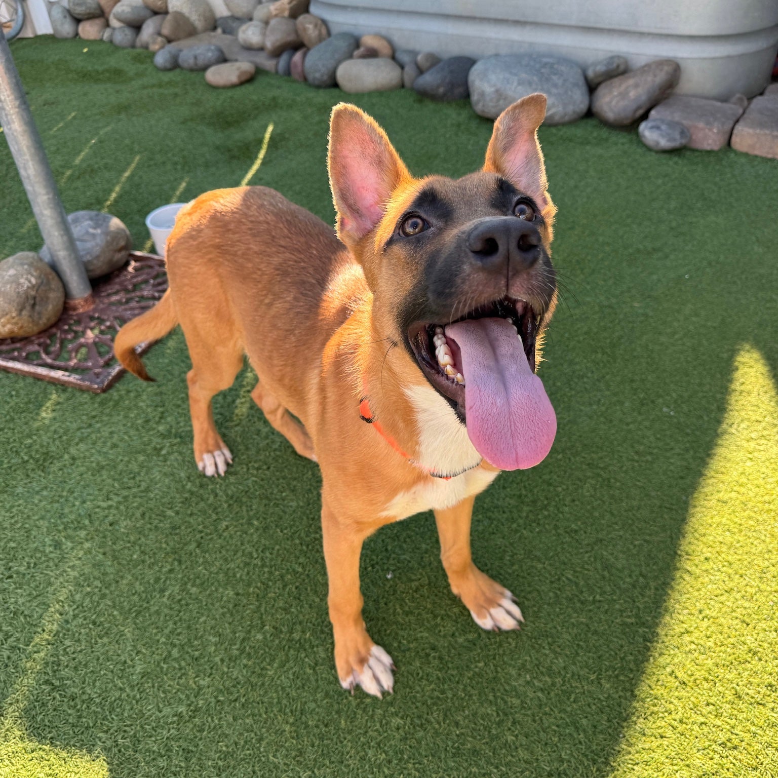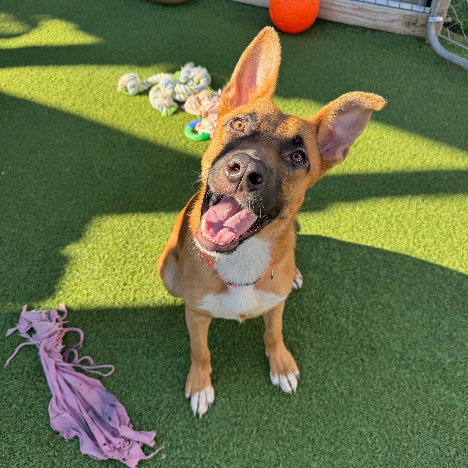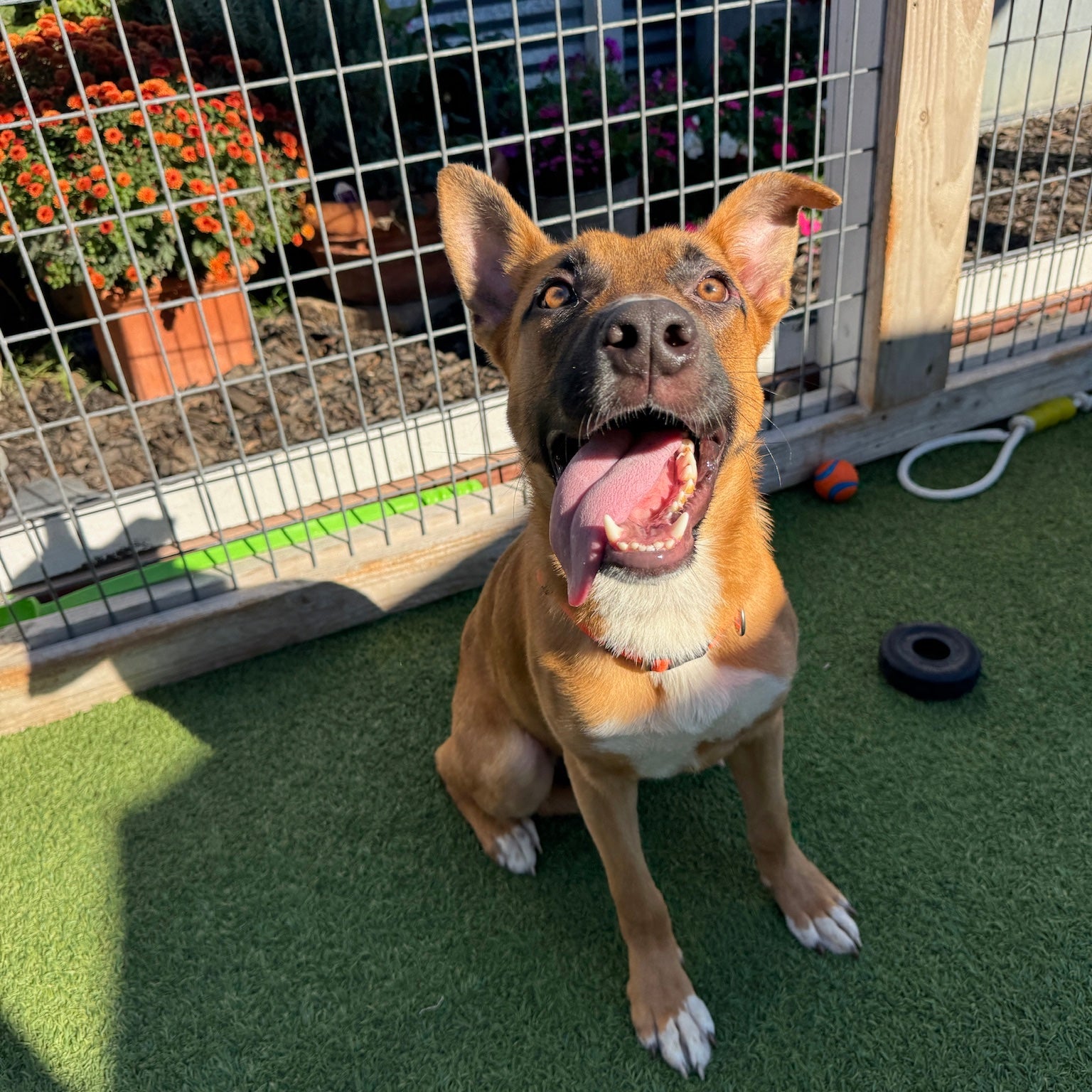 Meet McLaren — “Mac” for Short On October 1st, a scrappy, tail-wagging visitor scratched at the door of a kind 70-year-old woman. On her doorstep stood a skinny, hungry, but incredibly happy brown dog. She welcomed him in, gave him a warm meal, and took him to the Humane Society to check for a chip — none was found. After holding him for several days with no owner in sight, she became his first hero, getting him vet-checked, vaccinated, and dewormed. Her daughter then began searching for a rescue to take him in. With shelters and rescues full everywhere, it wasn’t easy — but this story tugged at our hearts, and we knew Mac belonged with us. From the moment he arrived, Mac fit right in. First stop: the food bowl (twice!). Next: a joyful romp with the other pups in the yard. He’s sweet, social, and playful, with a gentle heart and plenty of puppy energy to burn. We think Mac is a classic mutt with a splash of Shepherd, currently about 7 months old and 30 lbs, and we expect he’ll reach 50–70 lbs full grown. He’d thrive in an active home and would love another dog to play with. Mac has already proven he’s resilient, grateful, and full of love — now he’s just waiting for his forever family to take him for the ride of his life. ❤️